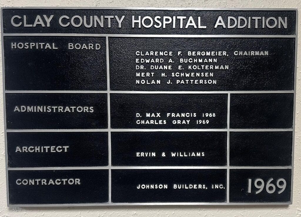 Construction of the medical center’s now east wing began during his two years at the Clay Center hospital. The additional space was completed in 1969. Also during his tenure, Clay County Hospital opened a home health department and began to offer ambulance services. In 1967, the area funeral