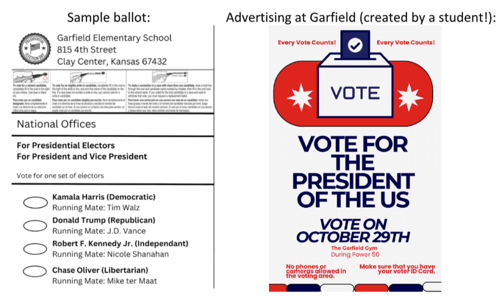 All student votes will be anonymous, and ballots will be paper. Garfield teachers have discussed the election with students, encouraged them to vote, understand the overall importance of voting, and are encouraged to discuss voting reasonings with the adults in their households.
