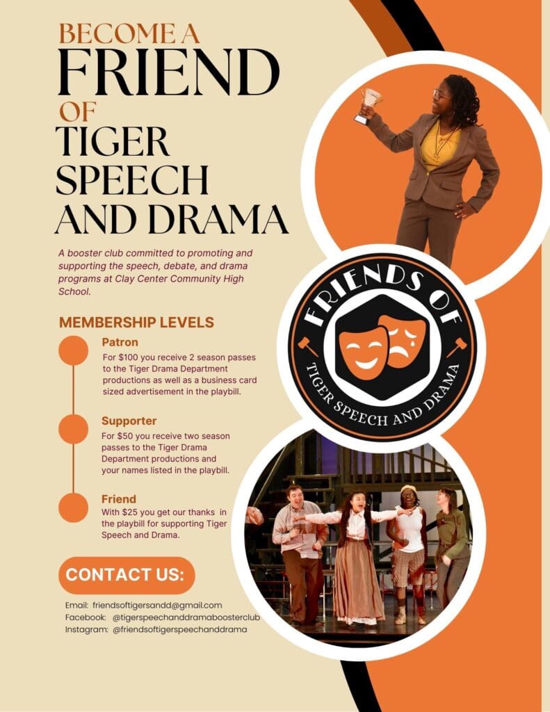 The Friends of Tiger Speech and Drama is a new booster club aimed at promoting and supporting the speech, debate, and drama programs at Clay Center Community High School.