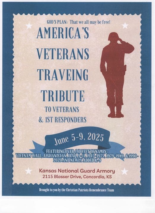 A group of dedicated people are working to bring a veteran and 1st responders tribute to the Concordia National Guard Armory next June. This tribute will feature a wall of names remembering those who have fallen protecting our country and freedoms.