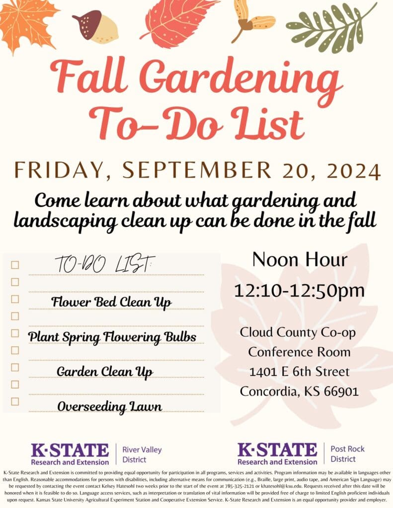 River Valley Extension District and the Post Rock District are partnering to offer a fall garden wrap-up program. This program will be held in two locations on two different dates.