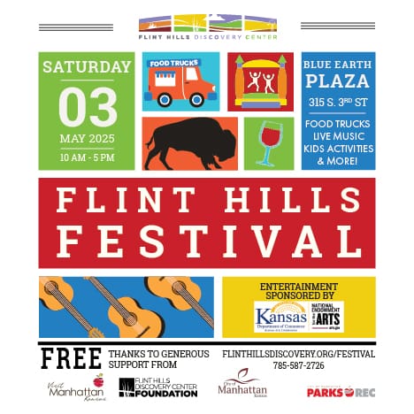 The Flint Hills Discovery Center’s annual Flint Hills Festival is set for Saturday, May 3rd at the Blue Earth Plaza from 10:00 a.m. to 5:00 p.m. This annual Festival is free to the public and offers something for people of all ages.