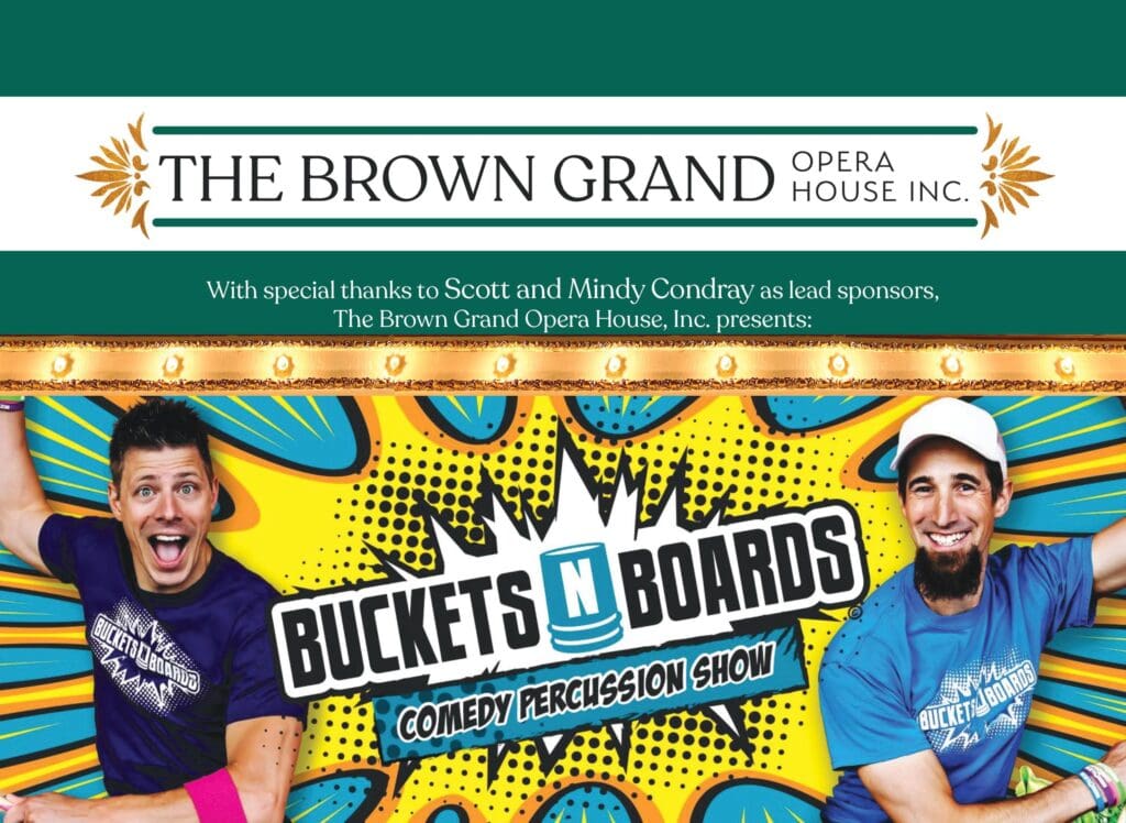 The Brown Grand Opera House, Inc. is thrilled to host the comedy percussion show Buckets N Boards on Sunday, October 27, 2024 at 3:00PM (310 W 6th Street, Concordia, KS).