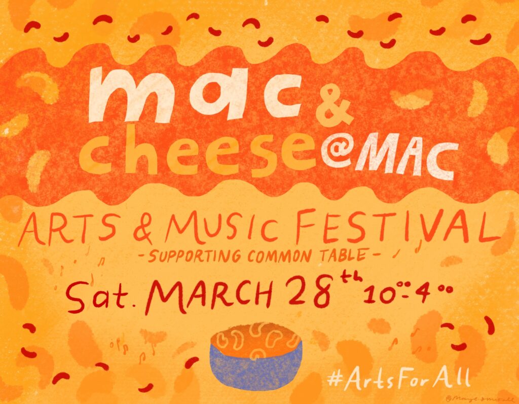 The Manhattan Arts Center (MAC) will hold its 3rd annual MAC & Cheese Arts and Musical Festival at the MAC on Saturday, March 28th, from 10:00 a.m. to 4:00 p.m. This Festival is free to attend and will feature a wide range of art and entertainment.