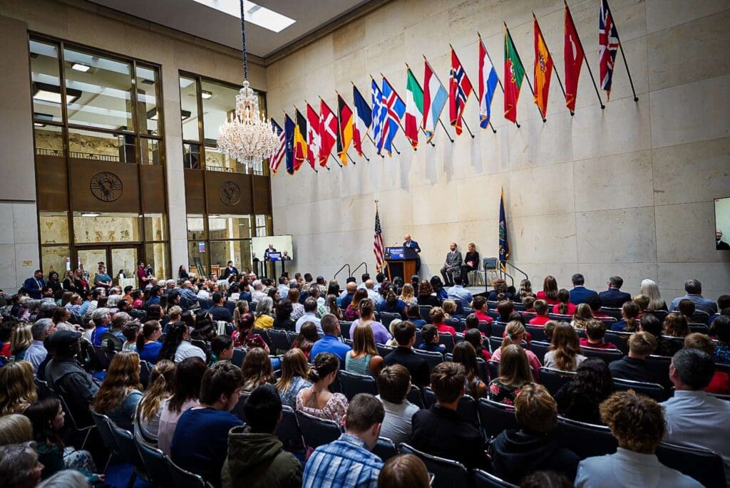 The audience, which included new citizens, their family members, school students and the general public, was treated to a stirring rendition of “The Star-Spangled Banner” by Dallas Pryor. They also heard remarks from Eisenhower Presidential Library Director Todd Arrington and Mary Jean Eisenhower, granddaughter of President and Mrs. Dwight D. Eisenhower.