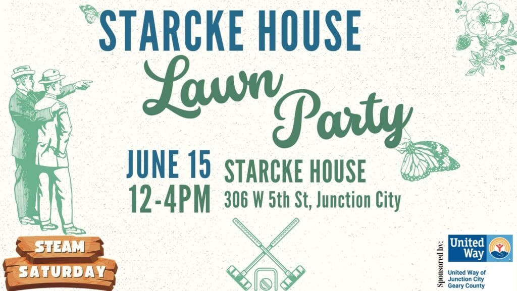 On Saturday, June 15th, from 12:00 to 4:00 p.m., the Geary County Historical Society and Museum (GCHS) invites the public to a special Victorian Lawn Party at the Starcke House, located next to the museum in Junction City.