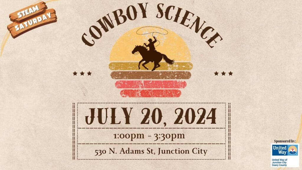 The Geary County Historical Society and Museums (GCHS) will host a “Cowboy Science” STEAM Saturday on July 20th. The event will be held at the Geary County Museum in Junction City from 1:00 to 3:30 pm. This fun-filled afternoon will feature cowboy-themed interactives including DIY cattle brands, balancing cowboys, makeshift western instruments, and more.