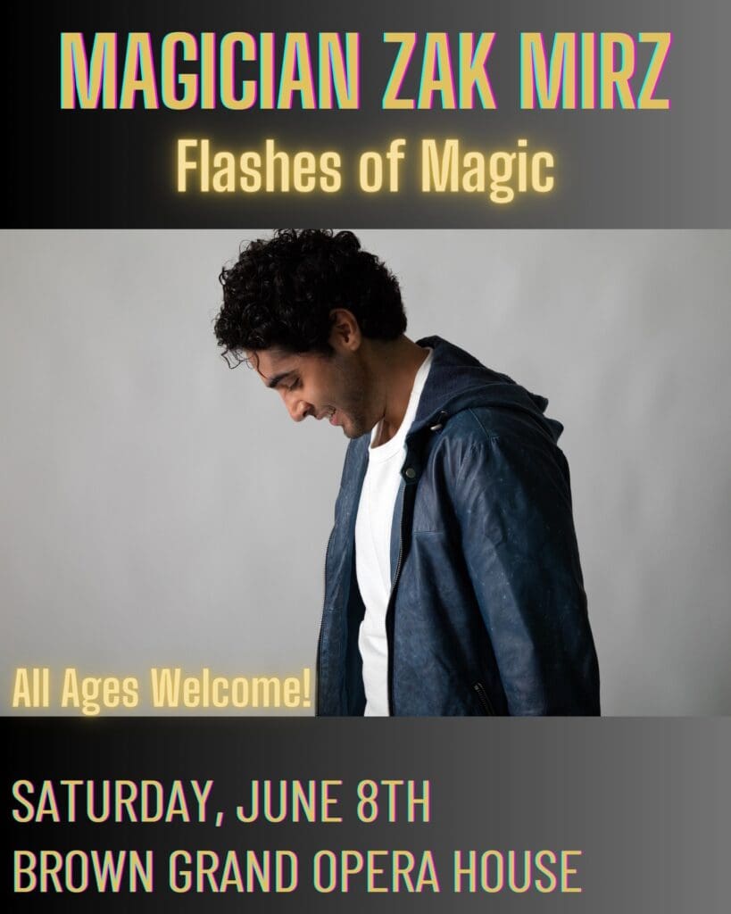 Nationally recognized Magician Zak Mirz will be taking the stage in Concordia on Saturday, June 8th at 7:00 p.m. A magic advisor for David Blaine’s special, and winner of Penn & Teller’s Fool Us Show in Las Vegas is bringing his new show to the Brown Grand Opera House.