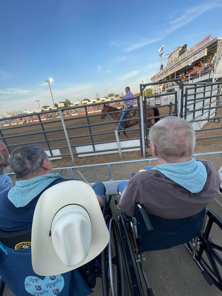 For more than a dozen years, the staff at Village Manor transports the residents to the Central Kansas Free Fairgrounds in Abilene, where the residents sit on the west side of the arena, watching the rodeo.