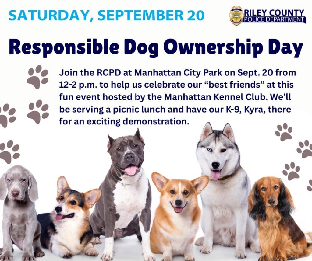 The Riley County Police Department has partnered with the Manhattan Kennel Club for Responsible Dog Ownership Day, taking place Saturday, Sept. 20, 2025, at Manhattan’s City Park.