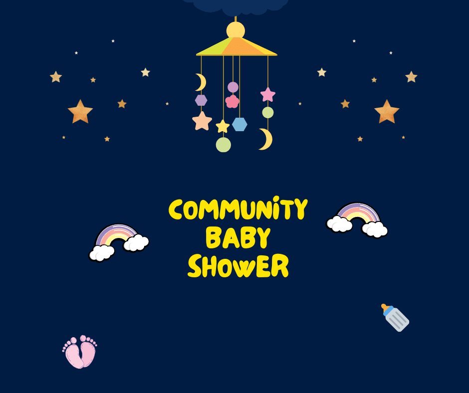 A community baby shower is a free event where local organizations and community members come together to support and celebrate new or expecting parents by providing essential information and supplies. Resources are intended for expecting families or families with infants up to 12 months of age.