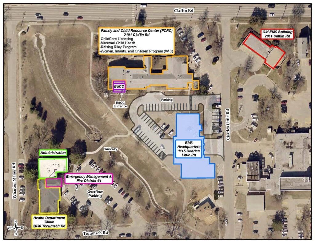 Beginning Thursday, July 3, meetings will be held at the Riley County Health Department’s Family and Child Resource Center (FCRC), 2101 Claflin Road, in the lower-level conference room #124 on the west side of the building. Attendees should use the southwest building entrance. Please see the attached map for details.