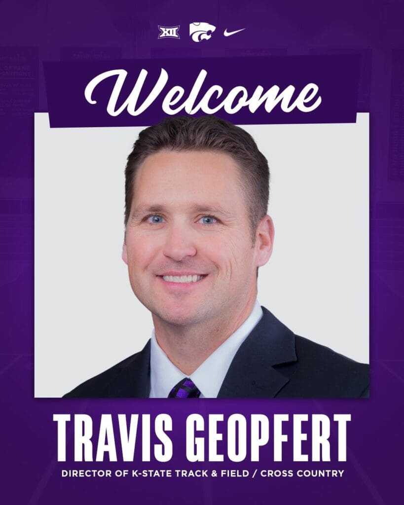 MANHATTAN, Kan. – Travis Geopfert, a four-time USTFCCCA National Assistant Coach of the Year, has been named the Director of Track and Field/Cross Country at Kansas State. Geopfert, previously at Arkansas, will be the seventh full-time director in K-State history.