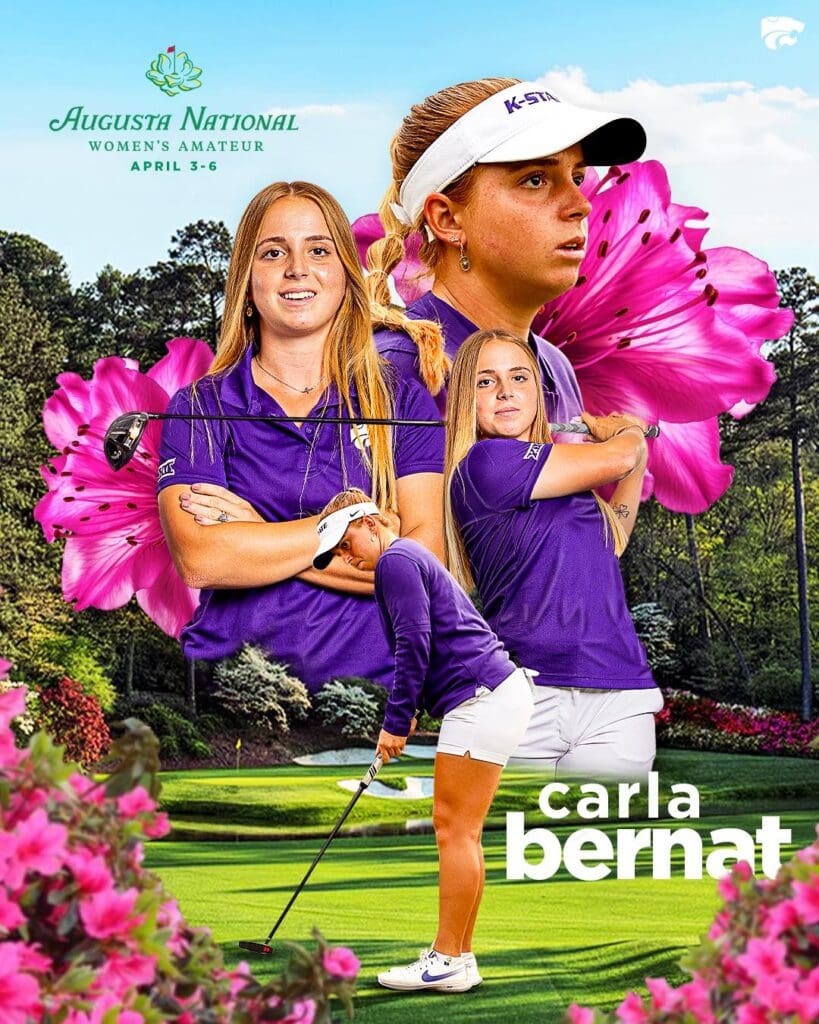 Kansas State junior women’s golfer Carla Bernat has been chosen to participate in the Augusta National Women’s Amateur, scheduled for April 3-6 at Champions Retreat Golf Club and Augusta National Golf Club in Augusta, Georgia. Bernat, a native of Castellon, Spain, previously competed in the event in 2022. The tournament will feature 72 women amateurs from around the world competing over 54 holes of stroke play. The first two rounds will be held at Champions Retreat, with the final round taking place at Augusta National Golf Club. Bernat, with a 70.28 stroke average, leads the Wildcats this season and is ranked No. 36 in the World Amateur Golf Rankings. This is her second appearance in a world-renowned amateur event this season after competing in the World Amateur Team Championship in October.