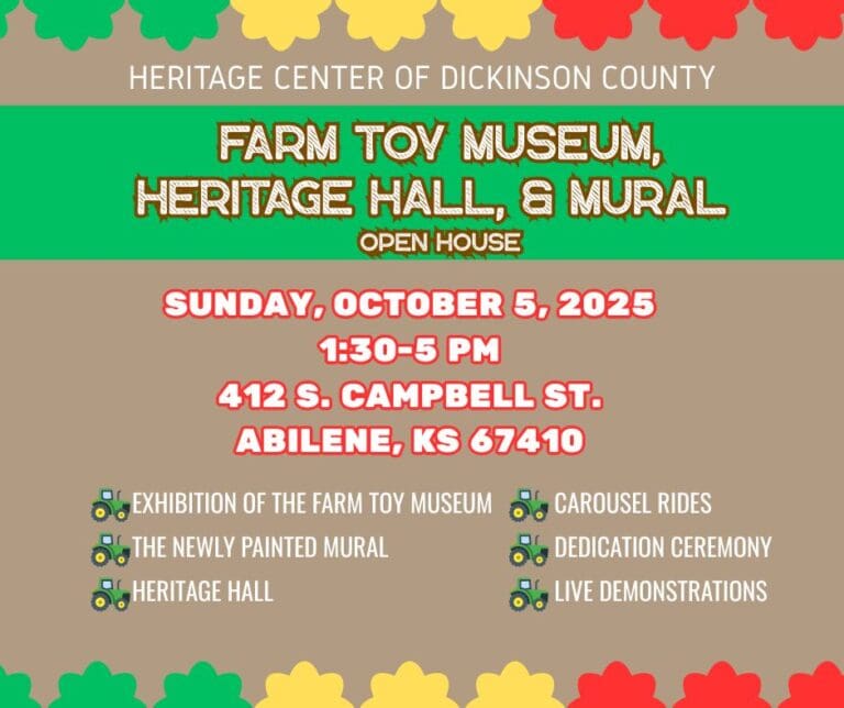 By: Ryan Duey Photo Courtesy of DCHS The Dickinson County Historical Society (DCHS) in Abilene will host an open house on Sunday, October 5th, of