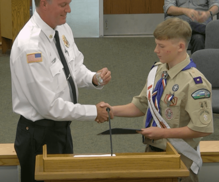The Junction City Fire Department honored boy scout Koen Oxford a the Geary County City Commission meeting. Koen assumed leadership of the project, organizing four