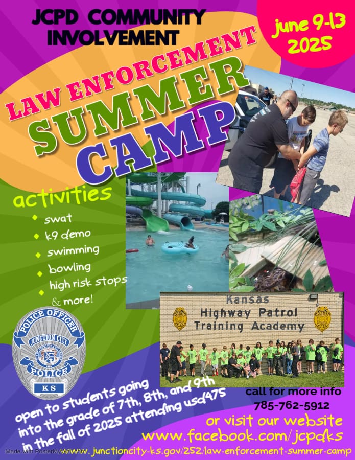 Junction City Police Department The Junction City Police Department’s Law Enforcement Summer Camp is a camp designed for middle school children. It is an outreach