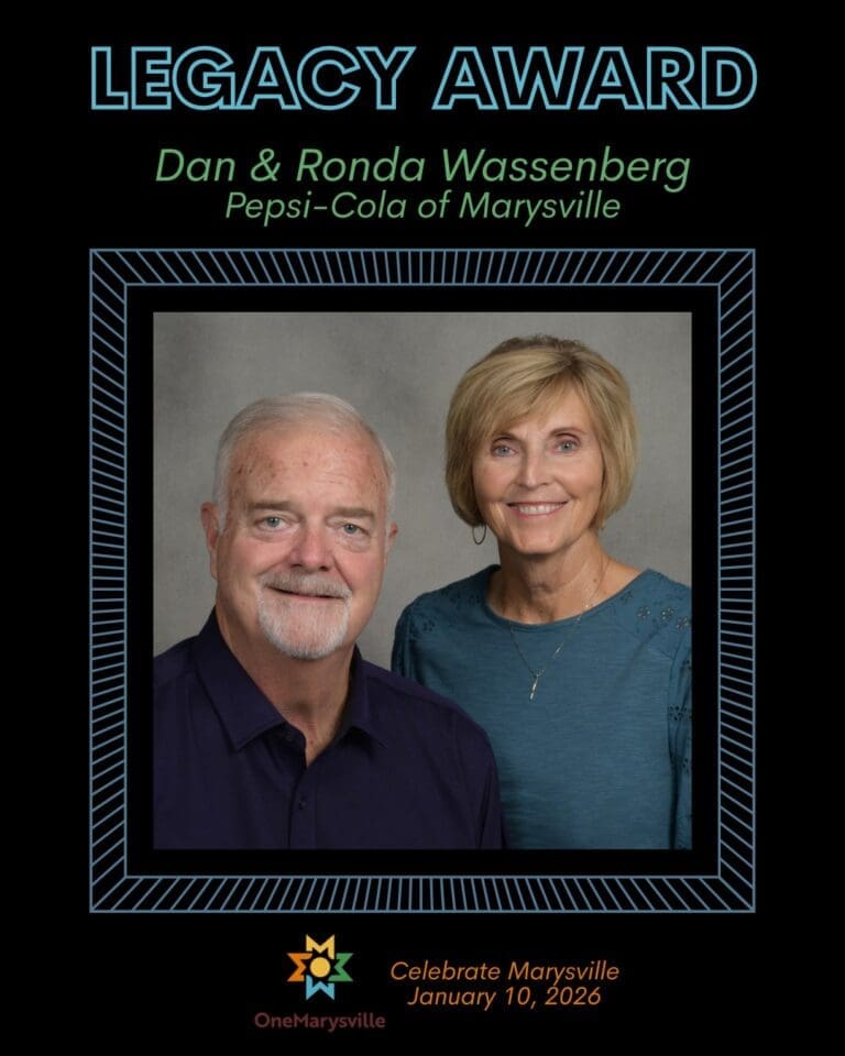 Photo Courtesy of OneMarysville OneMarysville will present the Legacy Award to Dan and Ronda Wassenberg of Pepsi-Cola of Marysville during Celebrate Marysville, the organization’s annual