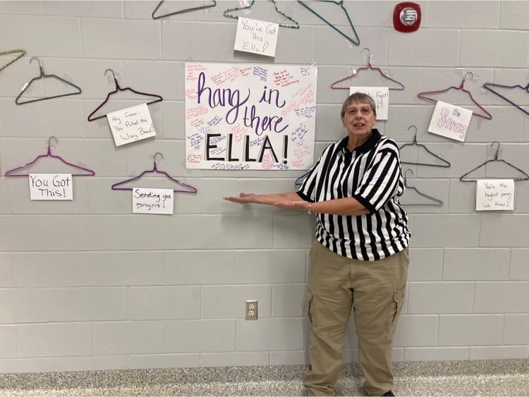 By Tim Voelker There was a great outpouring of support shown for Ella Oentrich at the Junior High basketball game at Linn. Cindy Geer, who