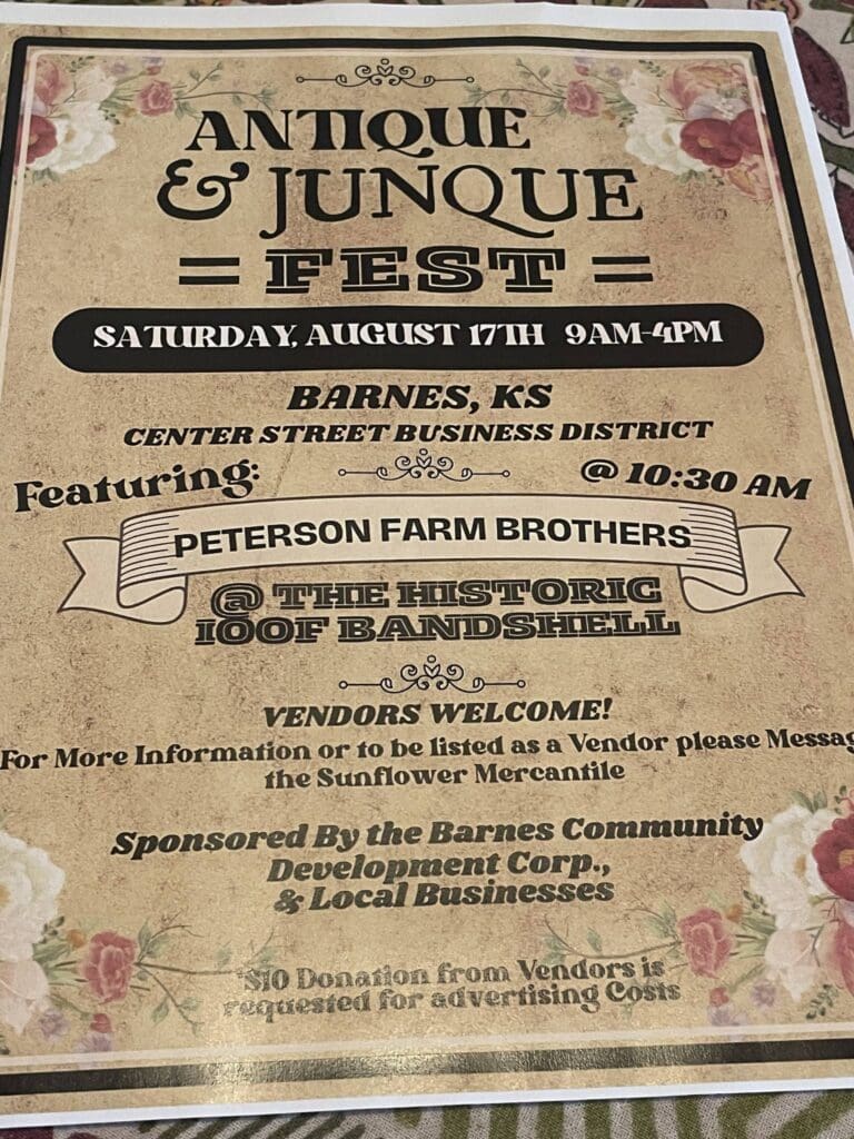 Vendors are still welcome to sign up for this fun event. Kruse said to arrive early so you don’t miss out on some unique treasures. To sign up as a vendor or to get more information on this year’s Junque Fest call Deb at 785-763-4310 or Melodie at 785-562-7393.